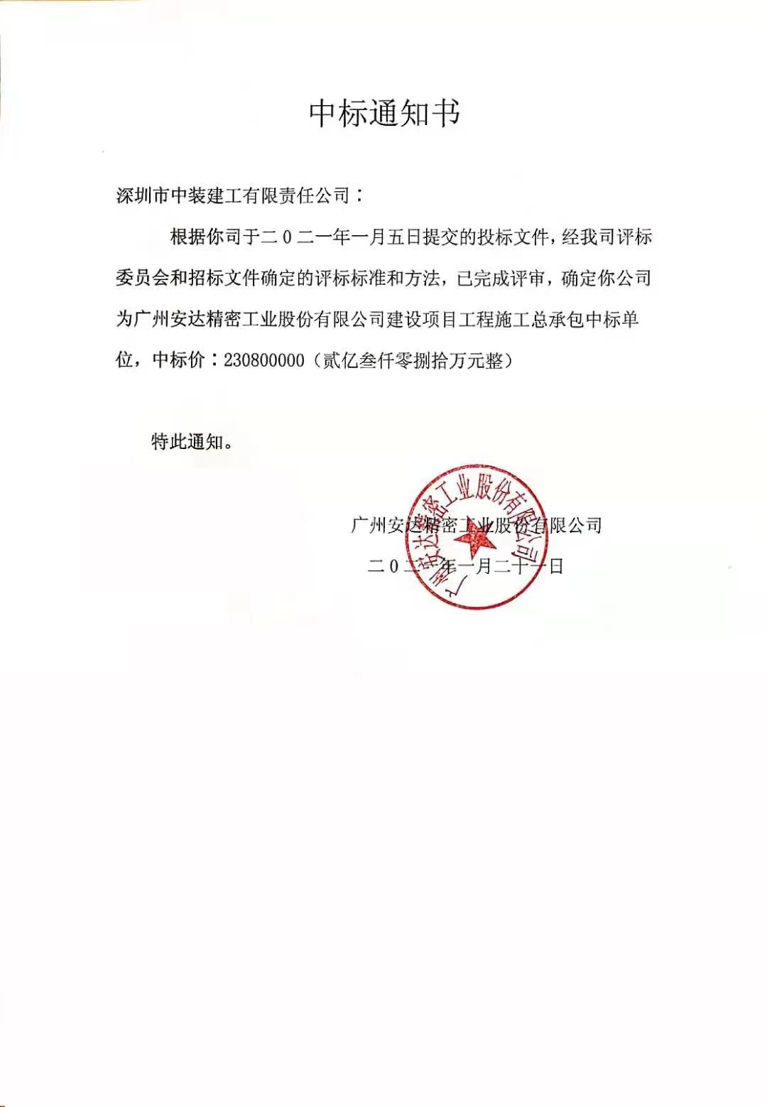 近日,中裝建工中標(biāo)廣州安達(dá)精密工業(yè)股份有限公司建設(shè)項(xiàng)目工程施工承包(以下簡(jiǎn)稱(chēng)“廣州安達(dá)股份施工總承包項(xiàng)目”),中標(biāo)金額為2.3億元。