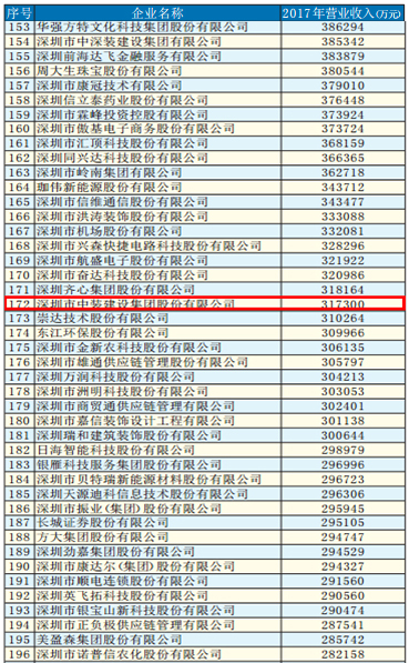深圳市企業(yè)聯(lián)合會(huì)、深圳市企業(yè)家協(xié)會(huì)日前共同發(fā)布“2018深圳500強(qiáng)企業(yè)”名單,中國(guó)平安保險(xiǎn)(集團(tuán))股份有限公司、華為投資控股有限公司、正威國(guó)際集團(tuán)有限公司分別位列榜單前三甲。深圳市中裝建設(shè)集團(tuán)股份有限公司以企業(yè)規(guī)模、品牌影響、發(fā)展?jié)摿Α⑸鐣?huì)責(zé)任、技術(shù)研發(fā)等優(yōu)異的綜合實(shí)力,位居172名,名列深圳裝飾企業(yè)前茅。